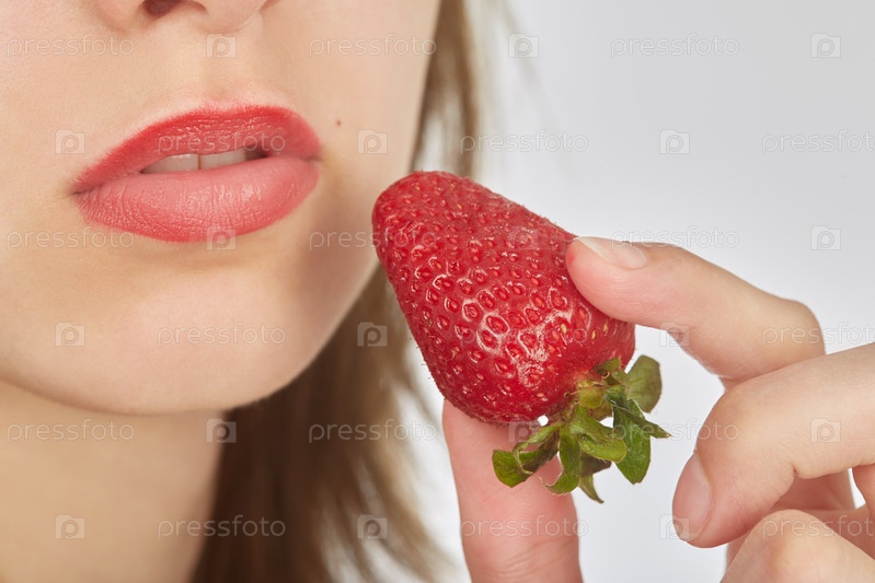 Женщина ест клубнику