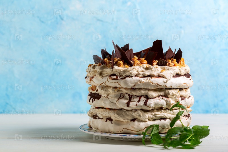 Торт безе со сливочным кремом, фундуком и шоколадом