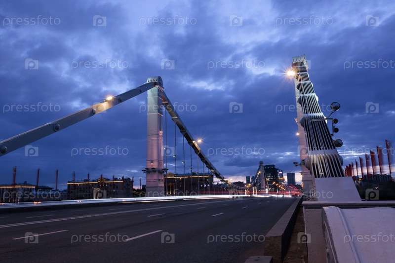 Подвесной мост через Москву-реку ночью