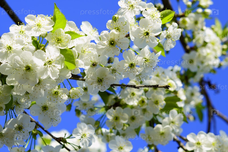 Цветы вишни на фоне синего неба