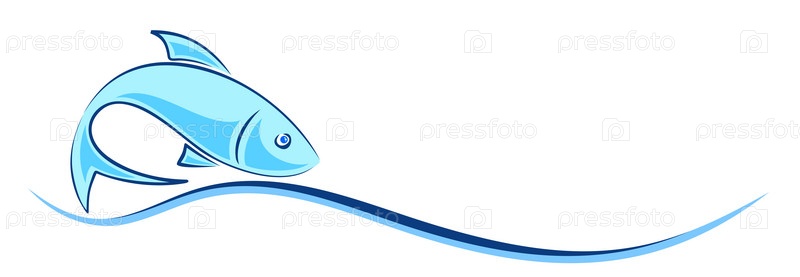 Логотип морской рыбы с голубой волной