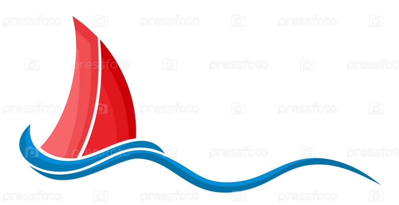 Логотип красного парусника с голубой волной