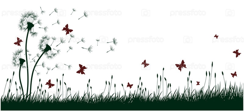 Луг с одуванчиками и бабочками