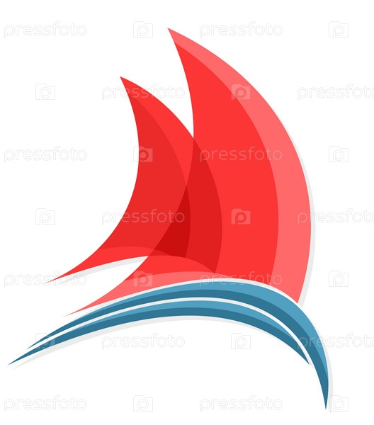 Логотип красного парусника с голубой волной