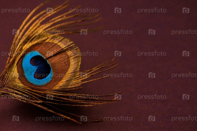 Перо павлина на бордовом фоне