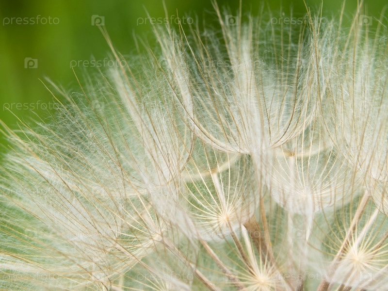 Белый пушистый цветок одуванчика крупным планом на естественном зеленом фоне. нежные необычные семена-зонтики макро фото