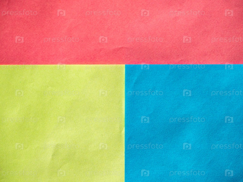 Геометрический абстрактный разноцветный бумажный фон. Листы красной, желтой и синей бумаги лежат друг на друге и образуют прямоугольники. Фон с текстурой бумаги