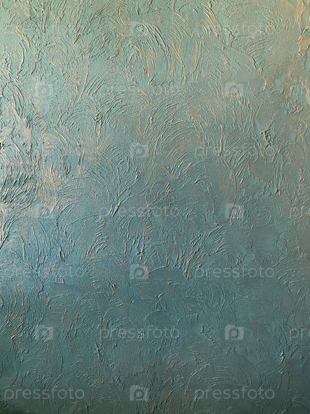 Фактурная штукатурка, бирюзовый с золотом, использована в качестве фона, вид сбоку, фактура