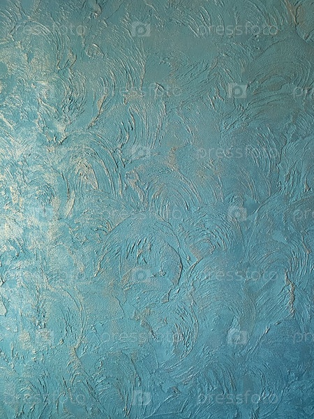 Штукатурка фактурная, бирюзовая с золотом, использована как фон, вид сбоку, фактура, рельеф