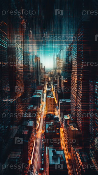 Концептуальное изображение большого города с небоскребами из стекла и бетона, созданное Ай