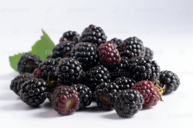 Небольшая куча спелой ежевики на чистом белом фоне