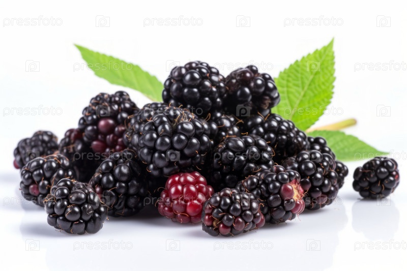 Небольшая куча спелой ежевики на чистом белом фоне