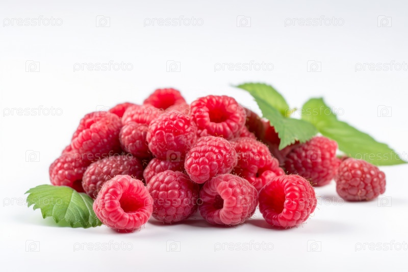 Букет красных и спелых ягод малины на чистом белом фоне