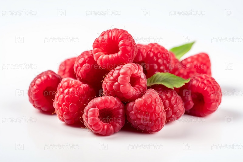 Куча красной и спелой малины на чистом белом фоне