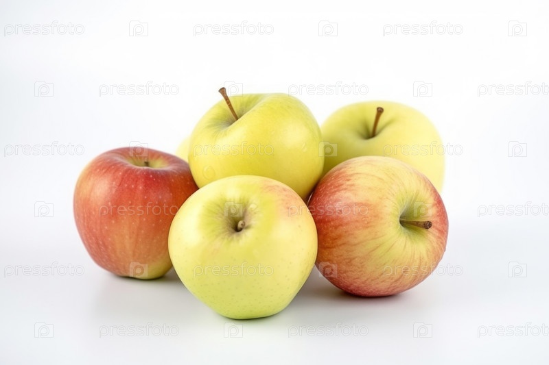 Спелые красные и зеленые яблоки на чистом белом фоне