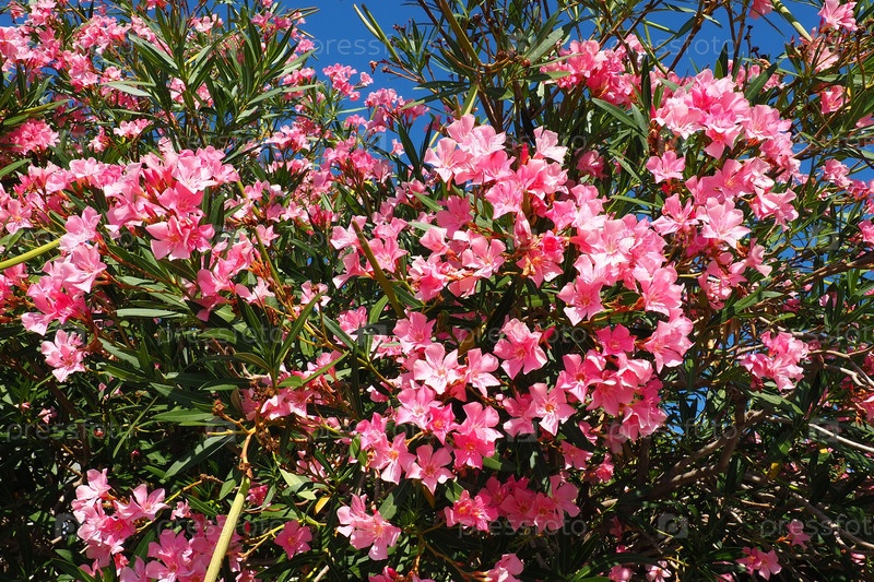 Олеандр, Nerium oleander Apocynaceae, представляет собой ядовитый куст. Он часто используется в садах из-за его розовых цветов