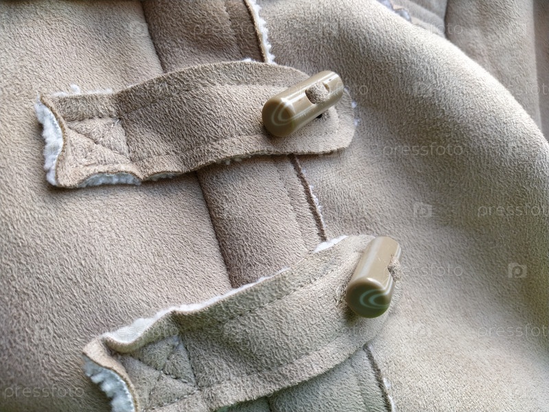 Замшевая верхняя одежда. Накладные петли для пуговиц. Скрытая молния. Бежевая искусственная замша с овчиной на складке демисезонного изделия. швы в материале. Швейная промышленность и мода
