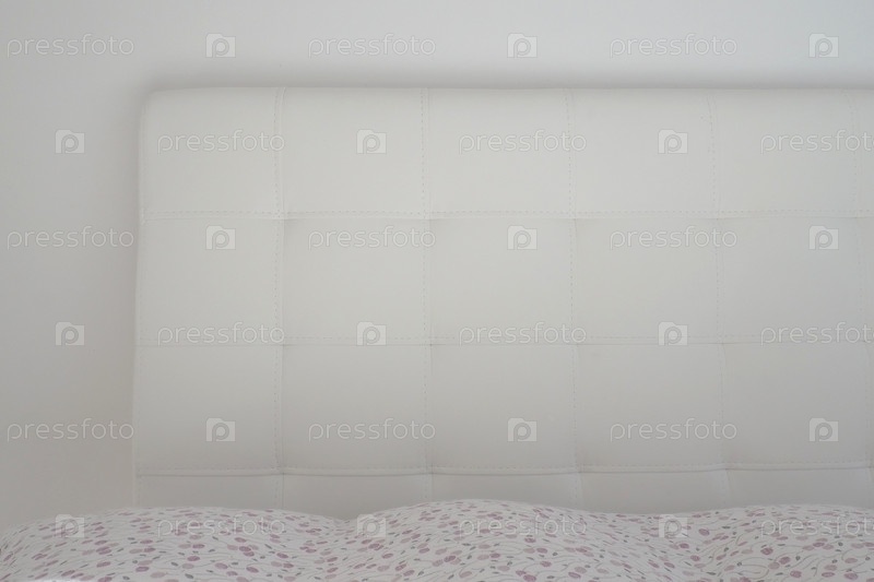 Мягкое изголовье. Обивка для мебели из натуральной или искусственной кожи и ткани. Мягкое изголовье у светлой стены