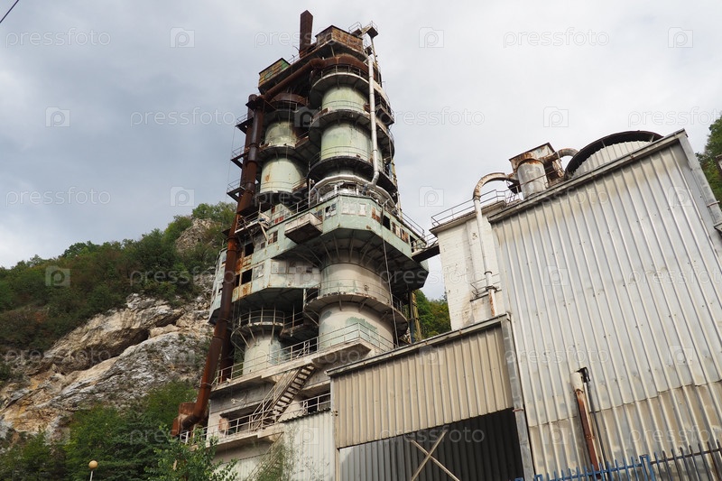 Мали Зворник, Сербия, 29 сентября 2022 г. Цементный завод, шахта Брасина. Промышленная архитектура. Смог и грязная пыль, загрязнение воздуха, промышленный фон на открытом заводе по дроблению и копанию камней