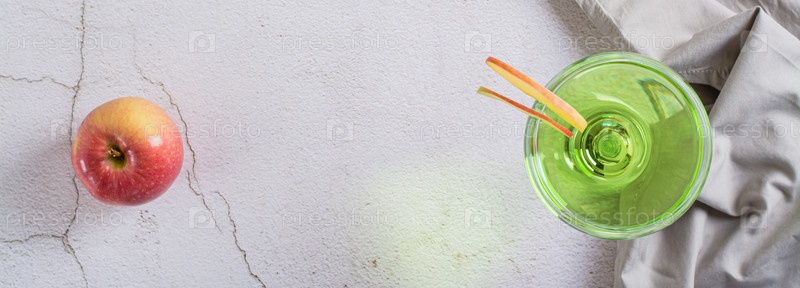 Освежающий яблочный мартини с фруктами в стаканах на веб-баннере с видом на стол