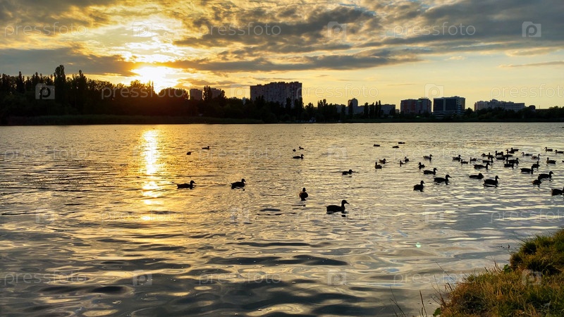 Пейзаж с видом на Старую Кубань на закате. Краснодар
