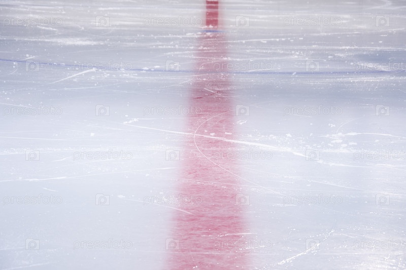 Текстурная поверхность льда ледовой арены, изрезанного коньками с линиями разметки центрального круга вбрасывания