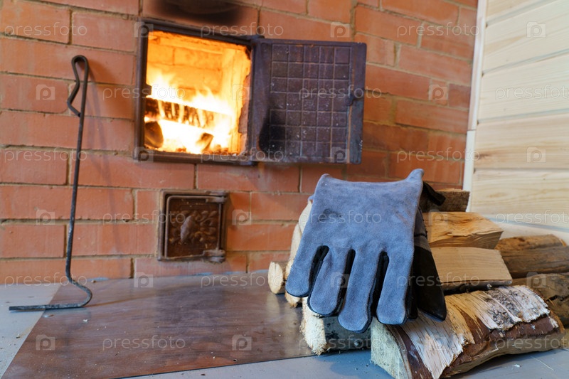 Открытая дверца дровяной печи