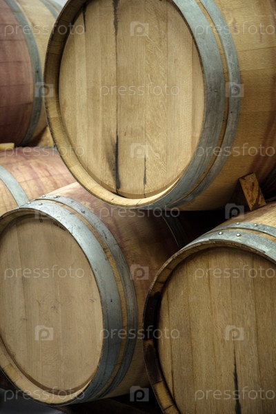 Деревянные бочки на винном складе