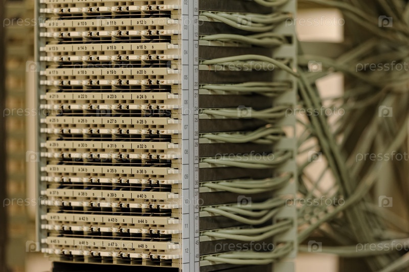 Главный распределительный щит проводов в центре коммутации мобильных устройств