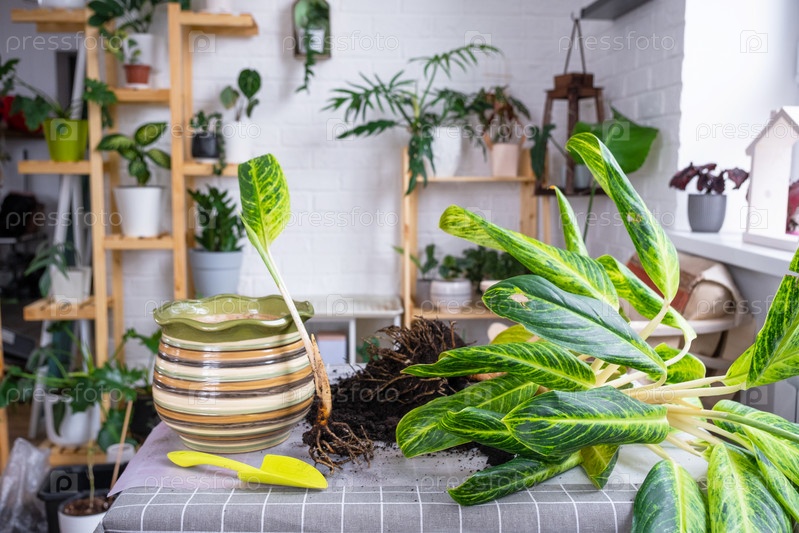 Пересадка домашнего растения аглаонема король сиама в новый горшок в интерьере дома. Уход за горшечным растением, размножение, отделение отростка от материнского растения