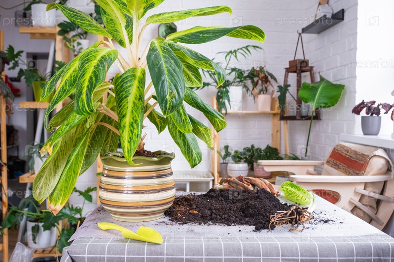 Пересадка домашнего растения аглаонема король сиама в новый горшок в интерьере дома. Уход за горшечным растением, размножение, отделение отростка от материнского растения