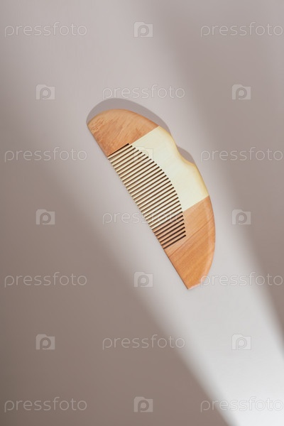 Деревянный гребень для волос на пастельно-бежевом фоне с тенью гобо. Модный снимок каталога
