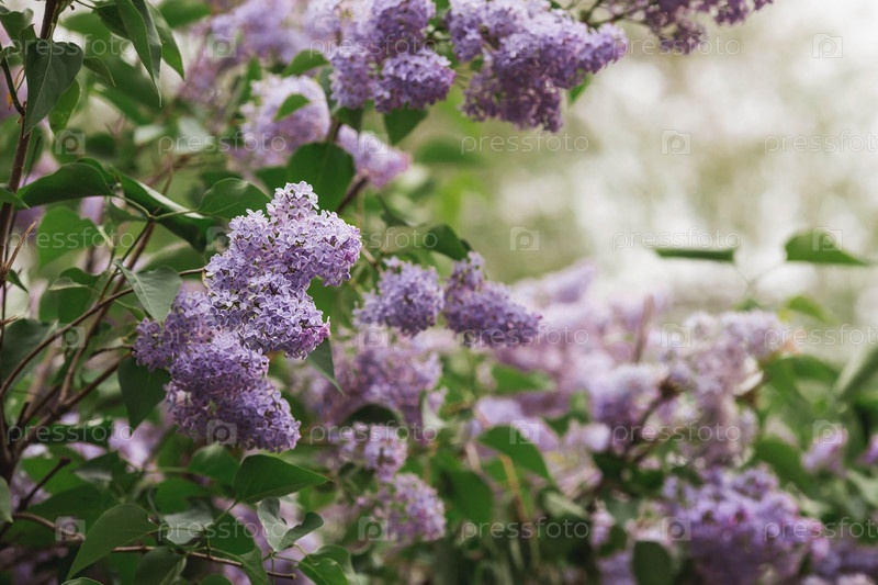 Пушистая, цветущая сирень. Красивый цветочный фон. Большие гроздья сирени