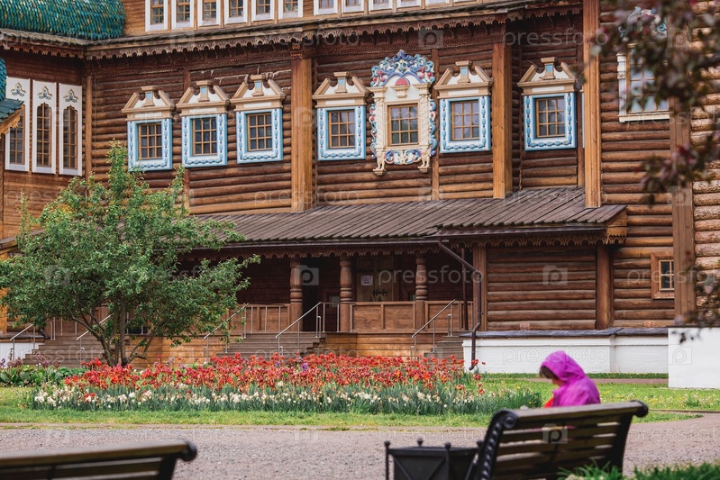 Городской ландшафт. Популярная туристическая достопримечательность. Визитная карточка Москвы. Деревянный дворец царя Алексея Михайловича в Коломенском. Россия, Москва, май 2023 г