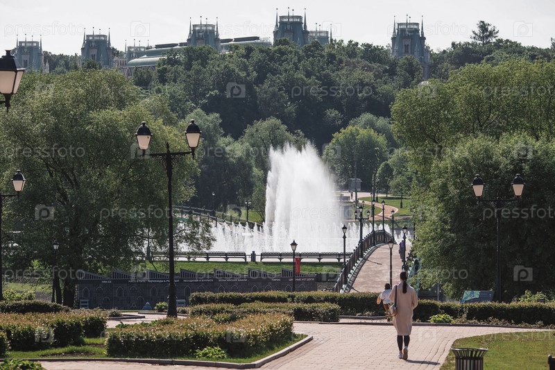 Светомузыкальный фонтан весенним утром. Природный музей-заповедник «Царицыно». Фонтан в Царицынском парке