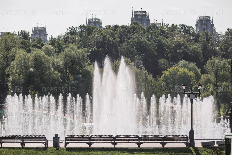 Светомузыкальный фонтан весенним утром. Природный музей-заповедник «Царицыно». Фонтан в Царицынском парке