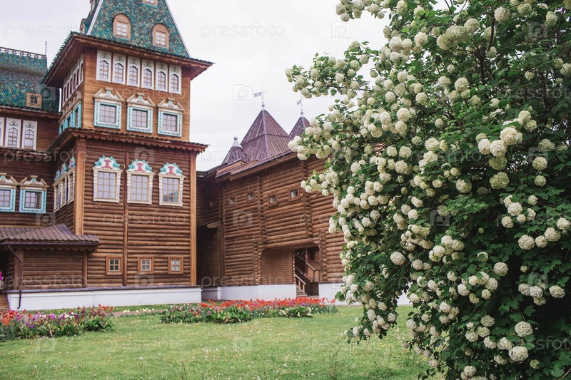 Городской ландшафт. Популярная туристическая достопримечательность. Визитная карточка Москвы. Деревянный дворец царя Алексея Михайловича в Коломенском. Россия, Москва, май 2023 г