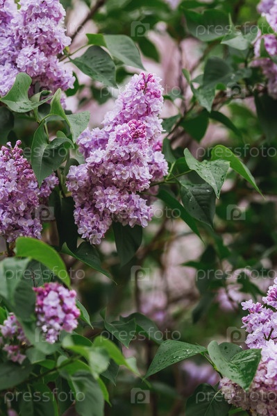 Пушистая, цветущая сирень. Красивый цветочный фон. Большие гроздья сирени