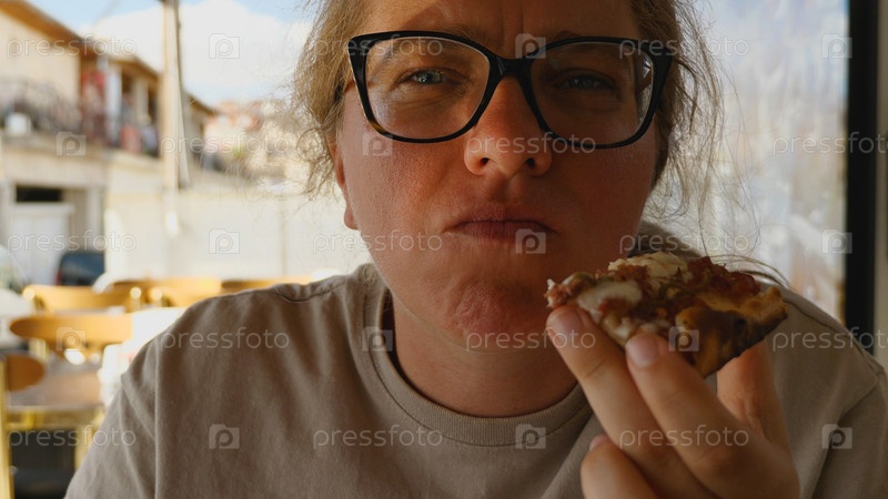 женщина ест пиццу
