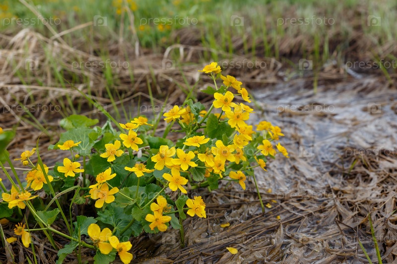 Календула болотная, Caltha palustris в цвете