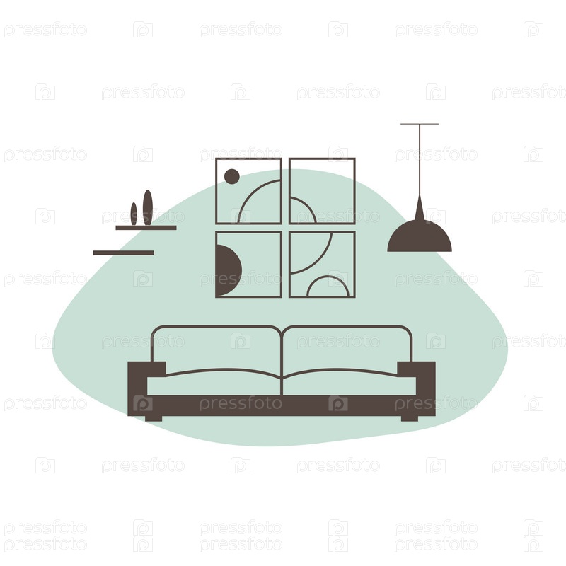 Интерьер гостиной с диваном. Мебельная иконка