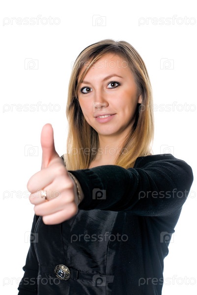 Молодая красивая женщина с большим пальцем вверх