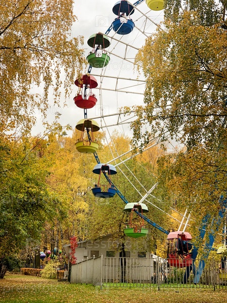 Колесо парома в парке развлечений осенью