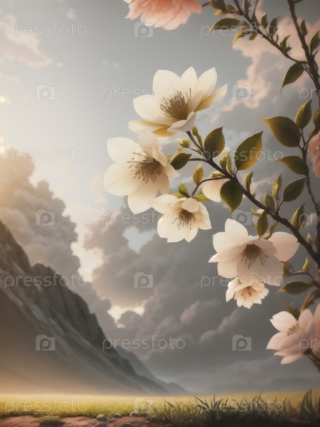 Расфокусированный весенний пейзаж. Красивая природа с цветущими ветвями ивы и парковой дорогой. Генеративный ИИ