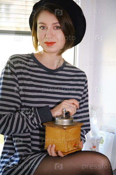 Девушка мелет кофе