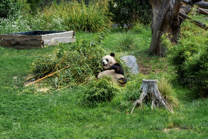 Панда отдыхает на лужайке