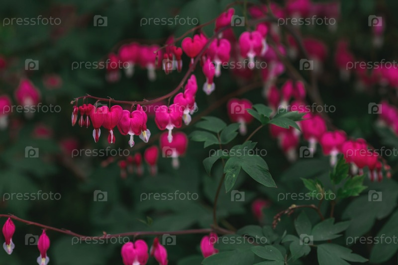 Диентра великолепная (лат. Lamprocapnos spectabilis). Красивый цветочный фон. Декоративное цветящее растение. Цветочный фон
