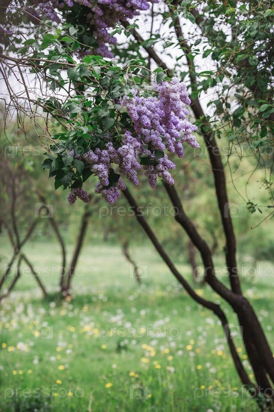 Пушистая, цветущая сирень. Красивый цветочный фон. Большие гроздья сирени