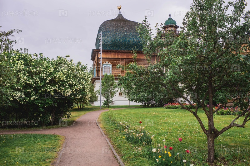 Городской ландшафт. Популярная туристическая достопримечательность. Визитная карточка Москвы. Деревянный дворец царя Алексея Михайловича в Коломенском. Россия, Москва, май 2023 г