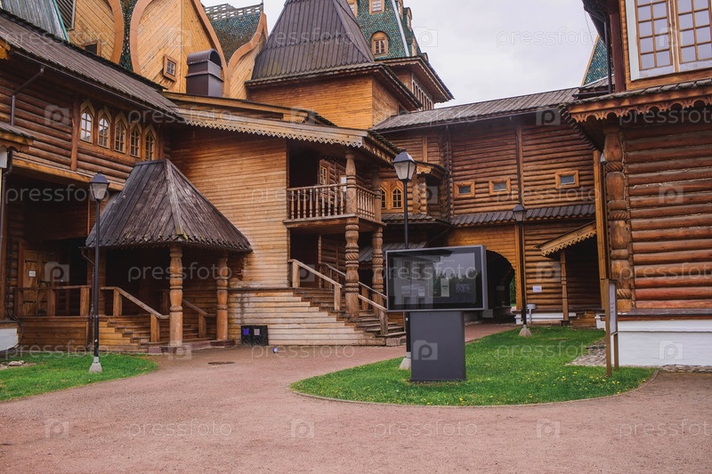 Городской ландшафт. Популярная туристическая достопримечательность. Визитная карточка Москвы. Деревянный дворец царя Алексея Михайловича в Коломенском. Россия, Москва, май 2023 г